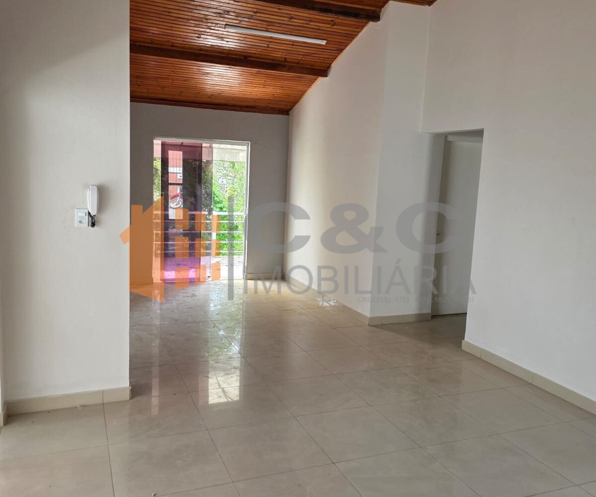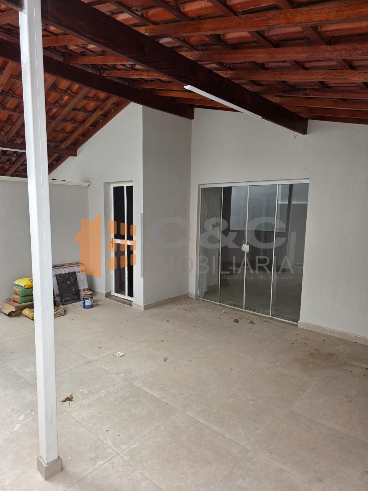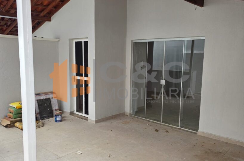 Casa 2 quartos, sala em dois ambientes, banheiro social, cozinha varanda, lavanderia, quintal e garagem.